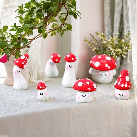 Bonitos adornos pequeños de setas de resina, decoraciones de macetas suculentas con micropaisaje de musgo