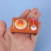 Mesa en miniatura para casa de muñecas con pan, mermelada, modelo de taza de café, juguete de comida en miniatura, accesorios de postre
