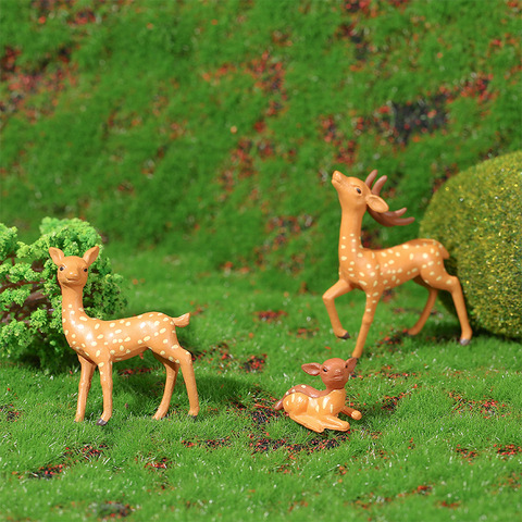Linda familia de ciervos, adornos de micropaisaje de musgo, decoraciones de plantas en maceta suculentas, figuritas decorativas